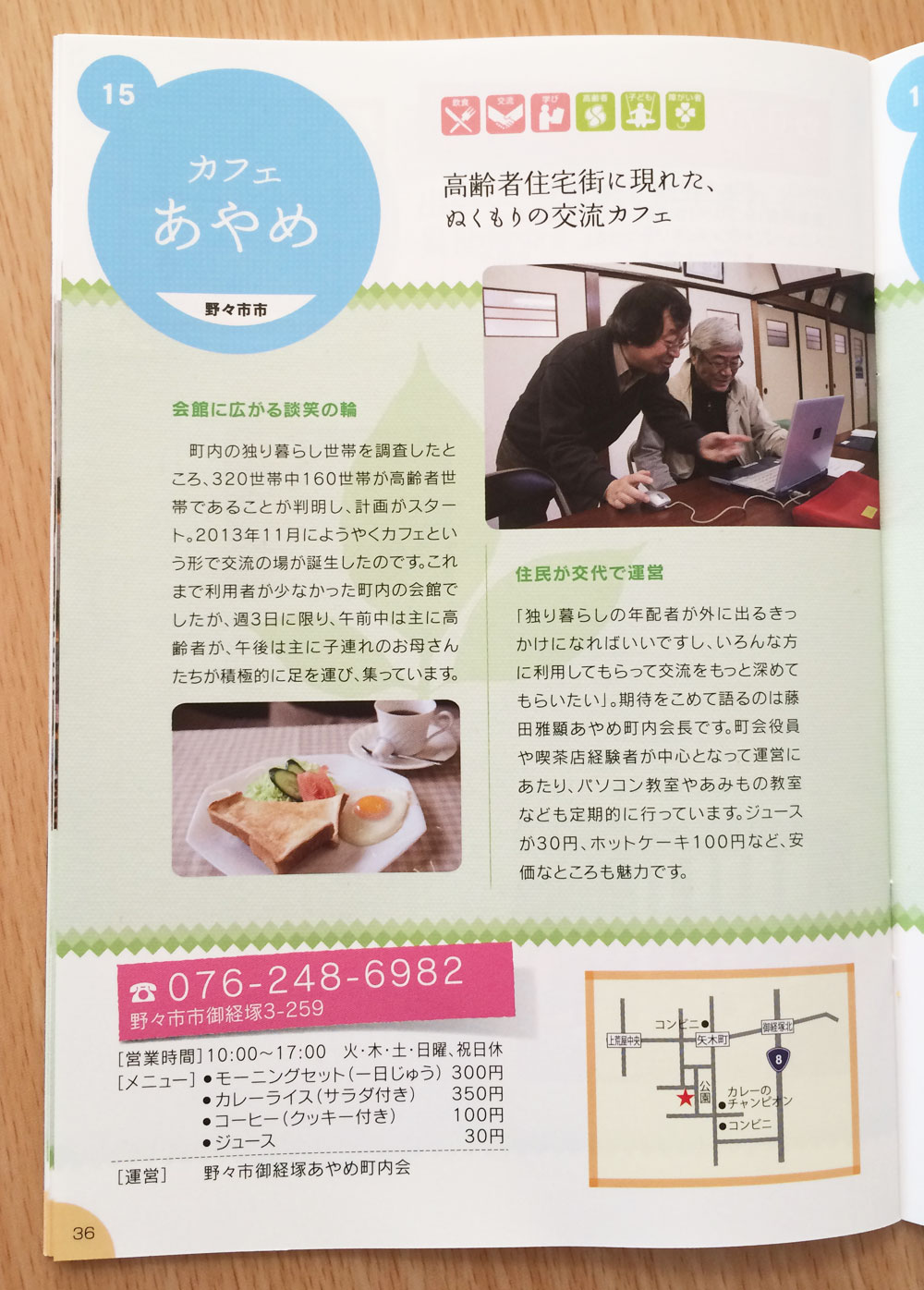 コミュニティーカフェガイドブック石川県版にカフェあやめがのりました。